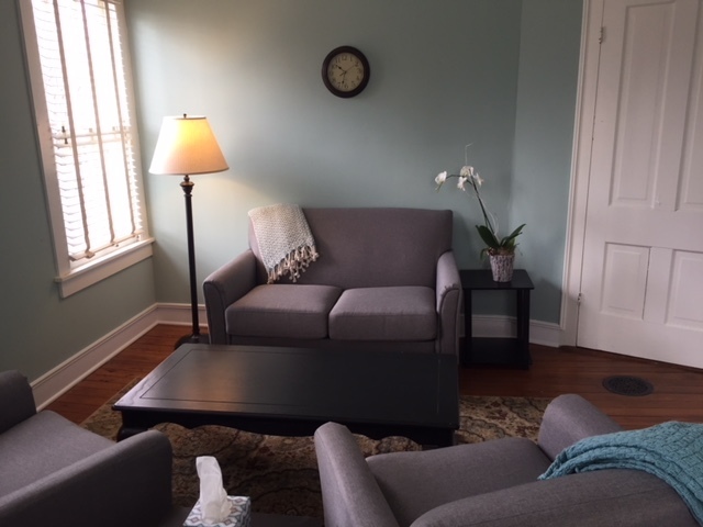 The reception area (also on the second floor) is private and warm. Comfortable seating, magazines and books, and toys help everyone settle in and feel more comfortable. Also located on the second floor is a private restroom. At the time of your appointment, I will meet you in the reception room. If I am not in that area when you arrive, it means I am in session, so please make yourself comfortable and I will be with you shortly.