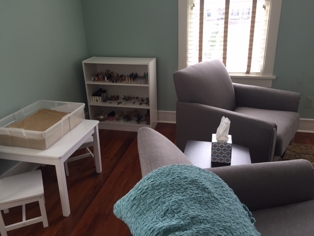 My office is calm and warm, simple and welcoming with windows offering gentle and natural light. My office is adjacent to the waiting room. Children feel safe knowing that their parent or a caretaker is nearby the entire time. This can be especially important if there was a traumatic loss or if there is any separation anxiety. I have a sand tray and sand tray toys as well other interactive therapy tools for the younger children in my office.